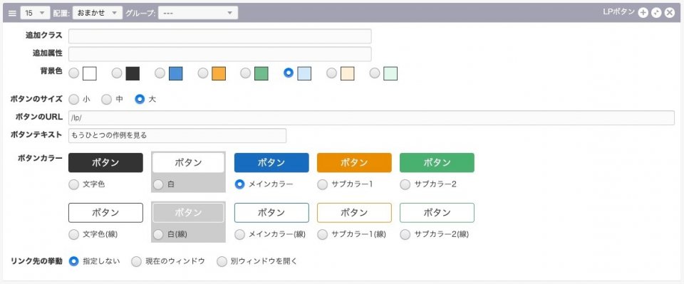 ボタンをクリックしたときに、リンク先を別ウィンドウで表示するかを選択できます。